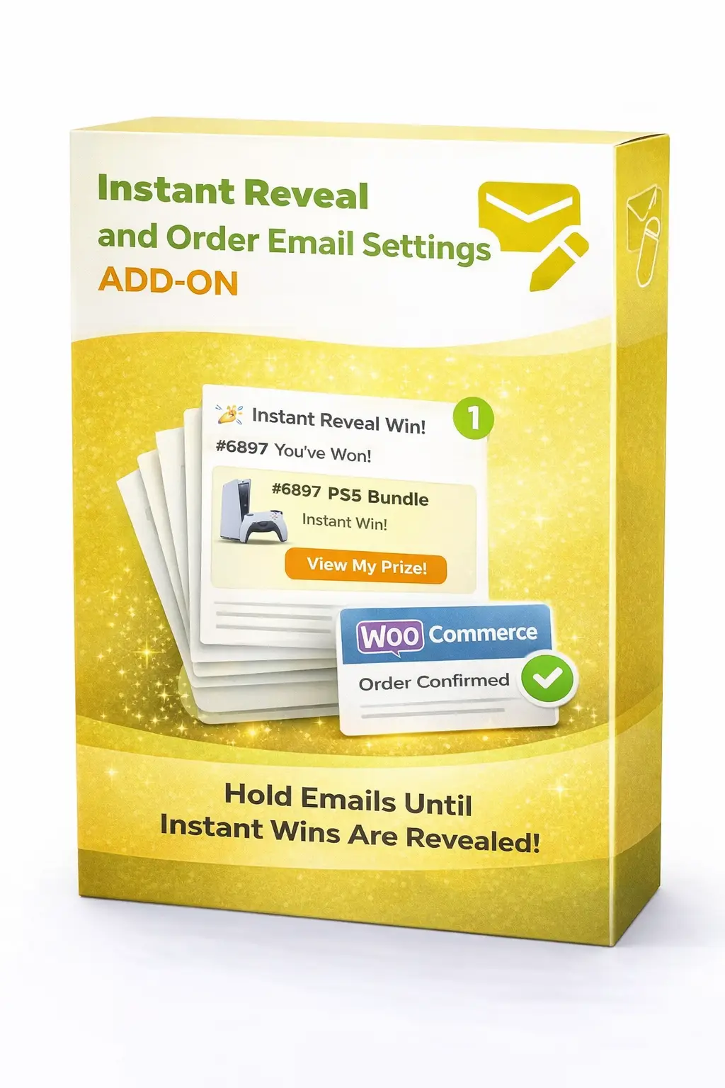 Instead of sending customers a plain order confirmation, you deliver a game, a reveal, and the chance to win.