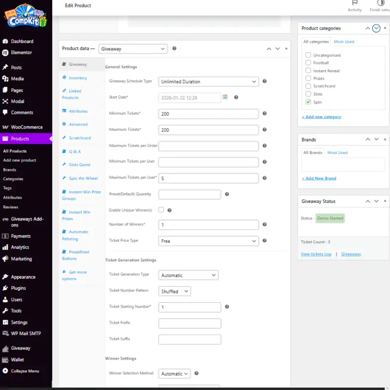 Built to work seamlessly with Giveaways for WooCommerce by Flintop, CompKit Game Engine connects directly into your existing competition and giveaway workflows, ensuring every ticket, prize, and winner is handled automatically.