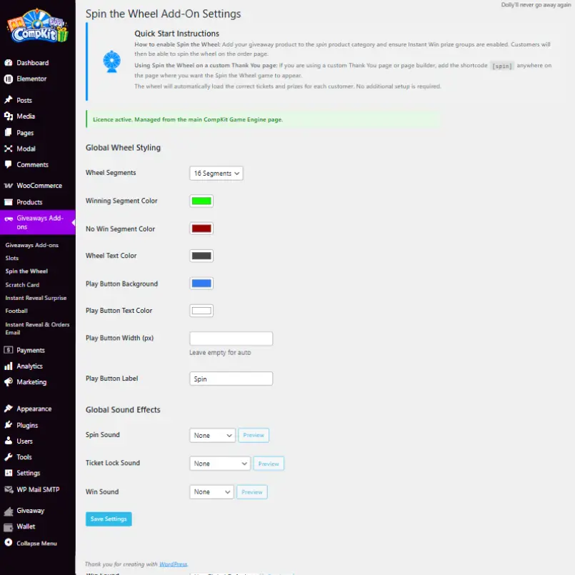 CompKit Game Engine is built specifically to integrate with Giveaways for WooCommerce by Flintop, using its ticket, prize, and draw system while adding a powerful interactive front end.